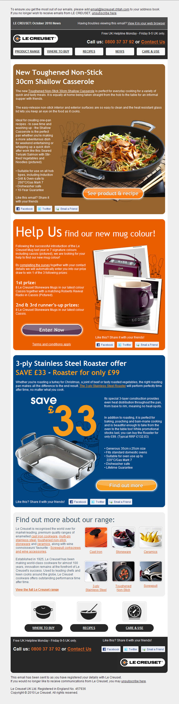 Le Creuset’s UK emails hit a good balance between editorial content and product copy, plus the design is clean and friendly. The build is also pretty robust, with plenty of web text and some nice coding workarounds.